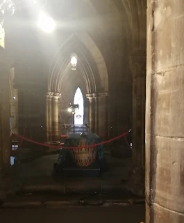 The door opened to reveal artefacts used on ceremonial occasions in the cabinet through the glass. I think there might have been a mace in there, but I couldn't be sure, and this photo doesn't reveal much!